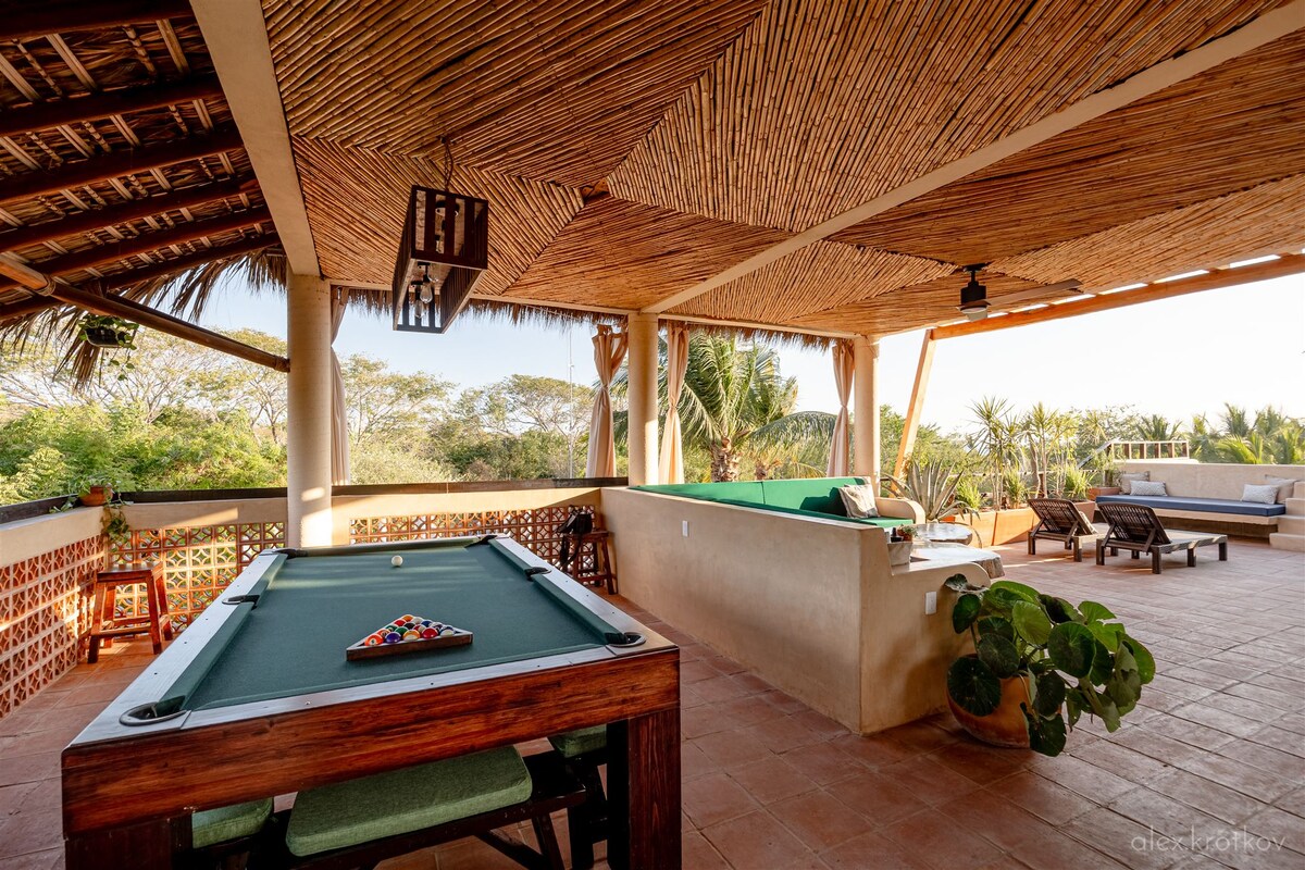 - Communal rooftop with ocean view, pool table, kitchen and seating areas