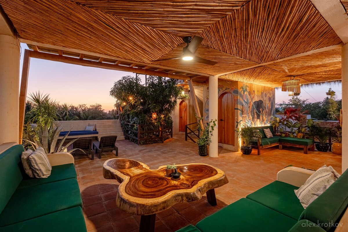 - In Tamarindos, 10 min walk to Punta and Zicatela, 2 min walk to beach