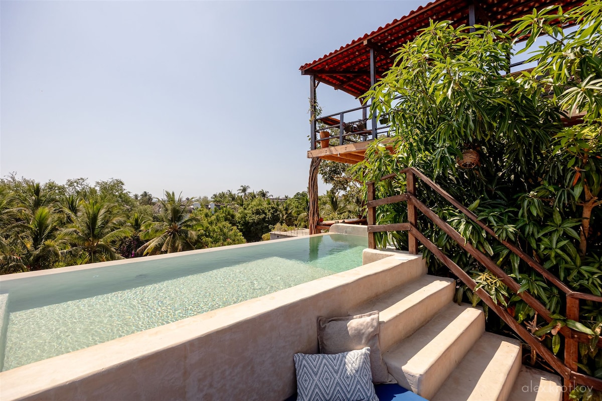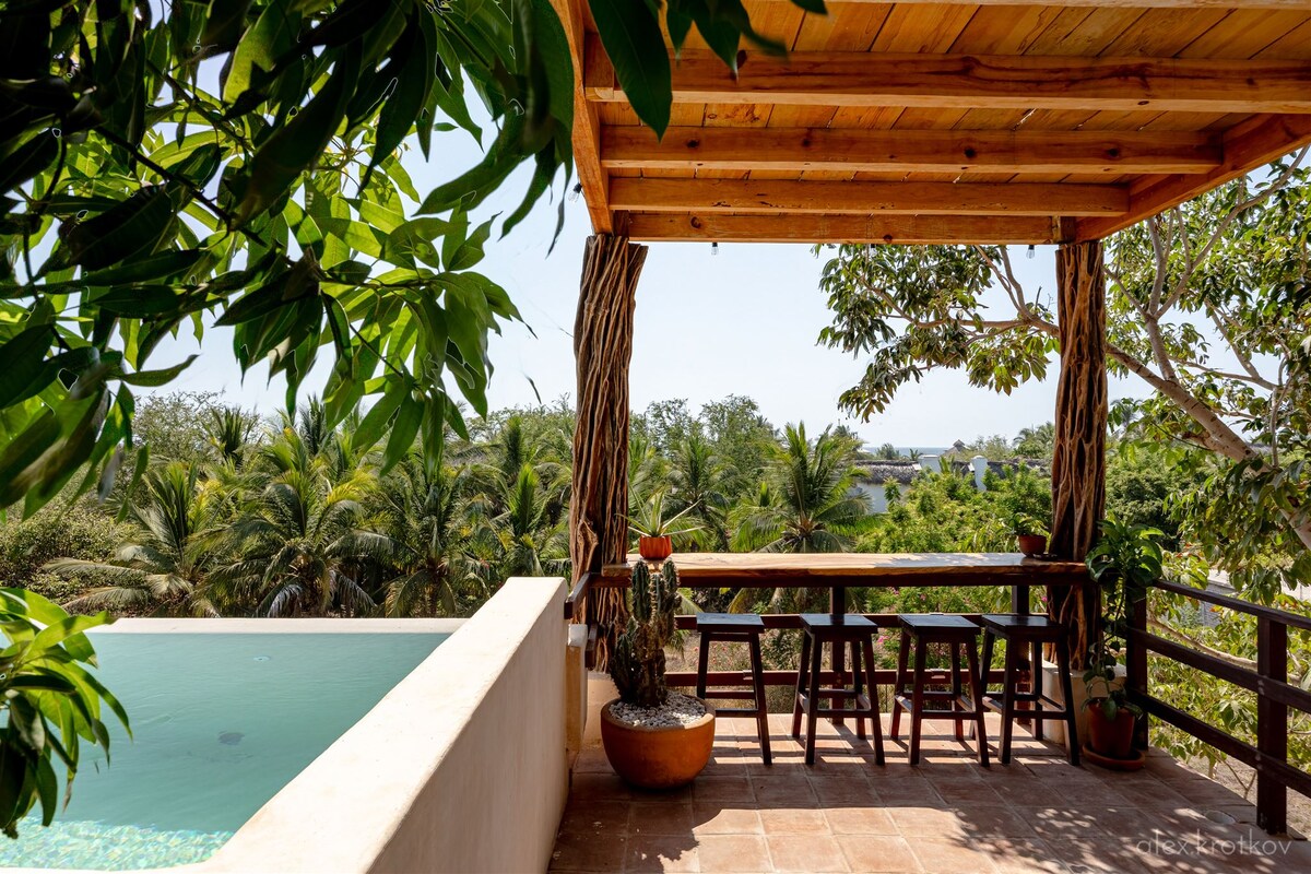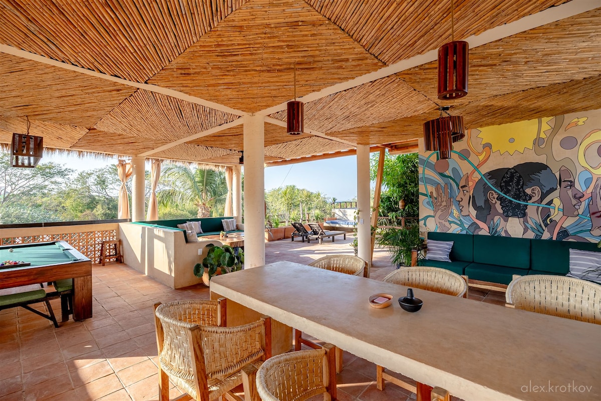 - In Tamarindos, 10 min walk to Punta and Zicatela, 2 min walk to beach