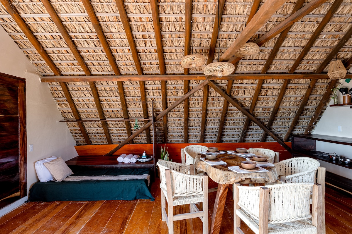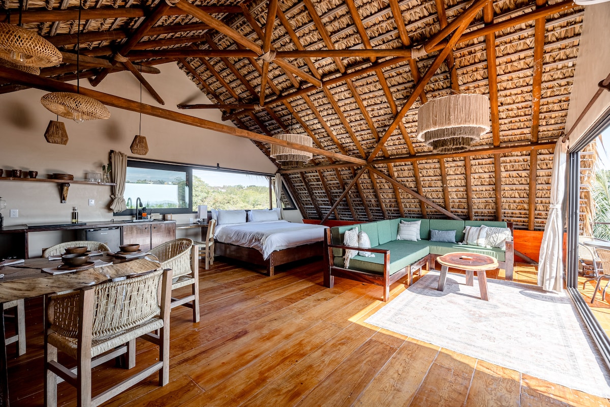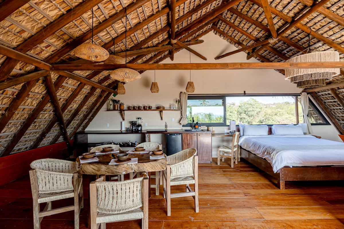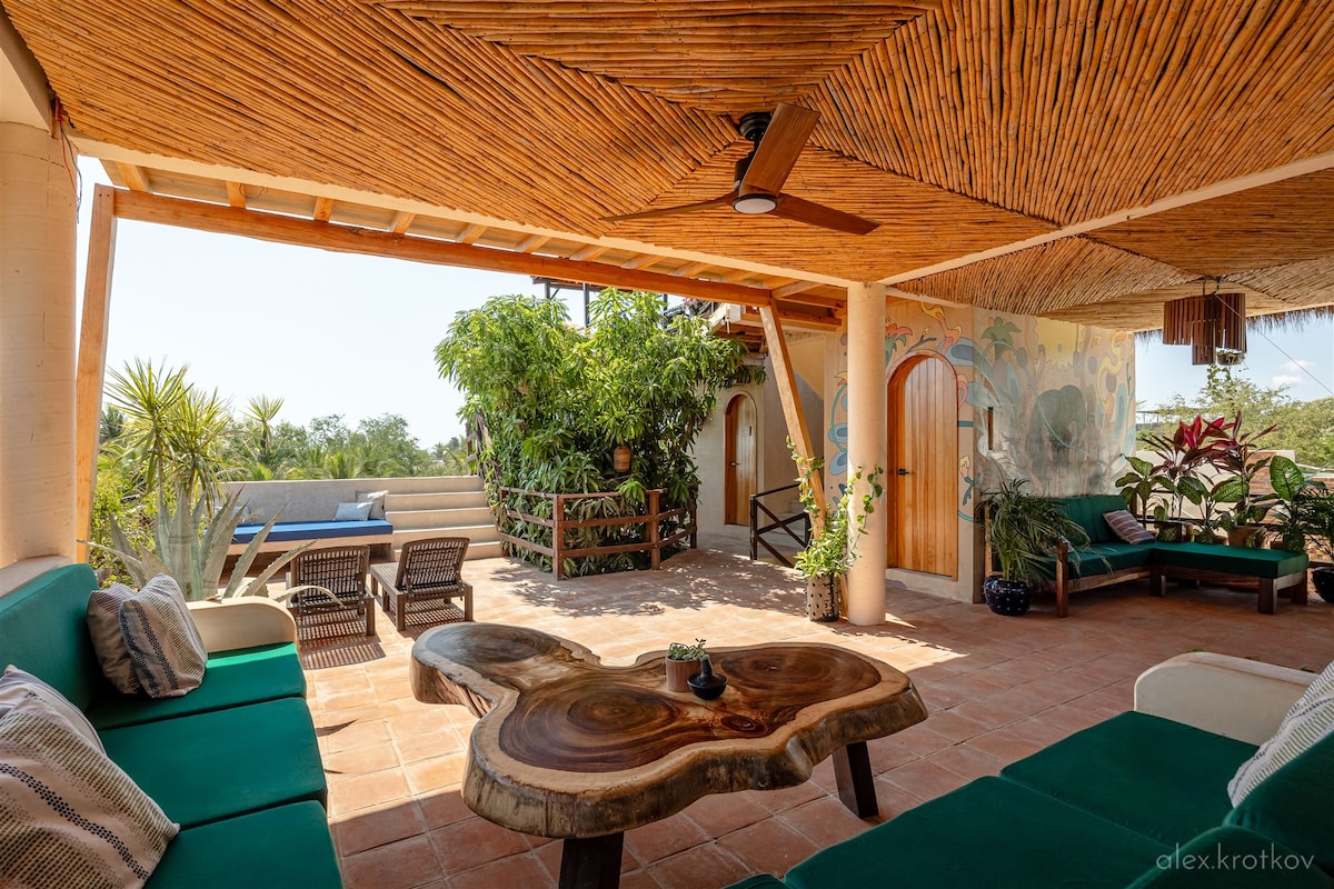 The spaceThe penthouse offers a one-of-a-kind stay inside a palapa on the 4th floor of our boutique hotel. This airy studio apartment offers an open floor plan, high ceilings, and natural cooling from the sea breeze, creating a relaxing and immersive tropical experience.